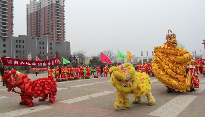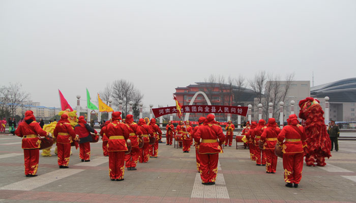 演出当天,春寒料峭,县城新世纪广场人头攒动、激情飞扬。在新世纪广场世纪柱北侧,万象城官方注册向全县人民问好巨大红色条幅格外引人注目。表演现场,龙腾狮舞,锣鼓喧天,巨龙摇头摆尾,双狮追逐嬉戏,盘鼓高亢有力,观众将演出现场围拢得水泄不通,一个个拿出手机拍照录像…… 最后,由双狮引路,巨龙表演进入公司中控楼向大地公司拜年祈福、期盼羊年大吉! ![]() ![]()