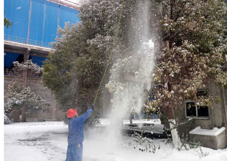 纷纷扬扬的雪花,把整个大地裹得严严实实,室外温度降到零下10度左右,虽然天气非常寒冷,但丝毫阻挡不住大地员工工作的热情。为了大家出行方便,为了保护树木不受伤害,各部门自发组织清扫积雪,特别是生产一线员工,在搞好检修工作的同时,积极组织清理积雪,做到检修清雪两不误。在冰冷的美景之下,一个个热火朝天的场面、一个个忙忙碌碌的身影、一张张朴实灿烂的笑脸,成为这雪天里最美的风景线。