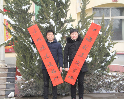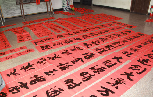 随着春节的临近,1月26日上午,宝丰县香山书社万象城(中国)集团开展义写春联活动,提前送上新春祝福,受到广大职工的热烈欢迎。这是多年来,大地集团与宝丰县香山书社联手,让书法走进企业,让艺术助力企业文化建设的又一活动。 虽然外面冰天雪地,大地集团一楼会议室却热闹非凡,翰墨飘香,写春联的案桌围满前来欣赏的职工们,有的在精心挑选自己喜欢的春联,有的主动帮忙叠红纸、扶春联、晾春联, 现场一片欢声笑语,喜气洋洋。书法家们屏气凝神,挥毫泼墨,一幅幅行云流水、遒劲有力、潇洒俊逸的书法作品跃然纸上,象征着吉祥、喜庆、富贵,平安的春联,赢得大家的交口称赞和争相索要。半天功夫,300多幅春联被一抢而空。 “毛笔写的春联更有意义、更有年味”。一位员工拿着刚写好的春联爱不释手。此项活动不仅传递着广大员工对新年的美好期盼,也让员工感受到集团的人文关怀,营造温馨和谐的新春文化氛围。 义写春联现场