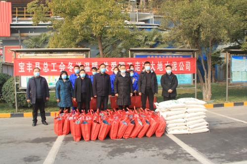 岁寒情深关爱暖心,疫情当前寒冬送暖。1月12日上午,县委副书记郭杰,县三级调研员、县总工会主席崔建利,县四级调研员张艳峰,县工会党组书记、常务副主席胡恩超一行顶冒着严寒深入大地水泥公司,开展冬送温暖、关爱职工慰问活动,为广大职工送来大米、棉被等物资,集团总裁王国杰、副总裁兼大地公司总经理赵中要等领导陪同。