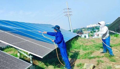 二、电站维护方面: (1)清洁积灰,提高能量转化效率。由于沉积物长期附在光伏组件表面,影响组件的输出功率,从而减少发电量以及造成热斑效应、组件衰减以及其它严重后果;为了减少灰尘遮蔽的影响,根据天气情况、降雨量分布情况、每日巡检情况,我们会合理安排人员安全上岗,对组件进行有效清洗,使效益产出最大化。 (2)除草治理,消除安全隐患。生长在光伏区与电站周边的杂草树木是影响电站发电的一大隐患。当光伏组件被杂草遮挡时极易产生热斑效应,不仅会“偷走”电站的发电量,更会“缩短”光伏组件的寿命,严重时还会引发火灾。为此,运维人员集中将生长过高的植物割除,将干枯的杂草树枝等进行了清理,同时加强光伏区日常防火检查和防护工作,及时消除光伏区火灾隐患,确保设备正常运行。