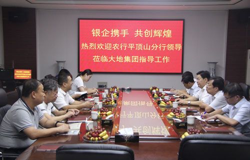 7月29日下午,农行平顶山分行党委书记、行长王逢乐,农行宝丰县支行党委书记、行长谢海峰等一行到大地集团考察指导。集团领导张怀平、董事长张彪、副总裁张中民等领导全程陪同。