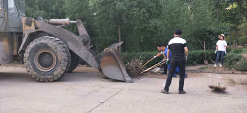 大地水泥公司、大地建材公司、吉森实业公司、铭泰建材公司等各个单位积极响应,迅速行动,全面开展垃圾清理和环境卫生综合整治,包括现场设备、园林管理、办公场所、水池清淤等各卫生“死角”。整个活动中,集团领导带头干,党员干部走在前,用实干精神和实际行动影响和带动着身边人。尽管天气非常火热,但大家并肩作战,团结协作,工作热情高涨,设备上的油渍用抹布一点一点的擦;大面积的落叶、杂物扫的扫,铲的铲。落在绿化带或角落里的就用铁钩钩出来;园林里的杂草用锄子锄或直接用手拔;树上的干枯枝叶就用大剪刀修;够不到的玻璃就用梯子爬到窗台上一块块地擦;池塘里的飘浮物,就下水打捞,一点点地清运……。炎炎烈日之下,一幕幕热火朝天、挥汗如雨的工作场面,令人感动。为了求时间,赶进度,大家加班加点,不讲条件,团结拼搏、吃苦耐劳、乐于奉献的企业精神在他们身上展现得淋漓尽致。
