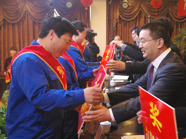会上,集团总裁崔泉发宣读了“关于表彰2012年度先进集体和先进个人及优秀经销商、供应商的决定”。对荣获劳动模范、技术能手、忠诚卫士、先进集体、先进工作者代表和优秀经销商、供应商代表进行了颁奖。先进单位代表、先进工作者代表、优秀经销商代表分别作了典型发言。