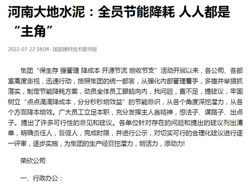 河南大地水泥:全员节能降耗 人人都是“主角”