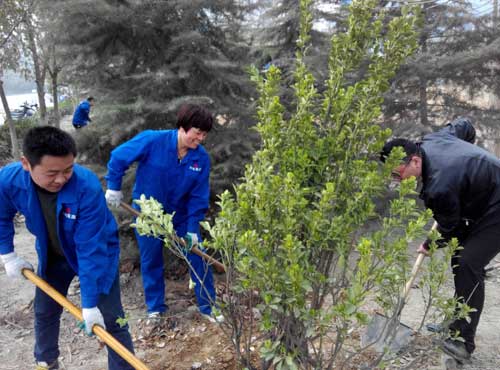 春光无限好,植树正当时。近日,在集团公司组织下,各分公司及后勤部门积极行动,抢抓时间,对集团所属厂区进行美化绿化,全面掀起植树热潮。 植树现场,人潮涌动,一派繁忙景象。各部室领导亲自带队,率先垂范,广大员工争先恐后,行动迅速,大家挥锹铲土,踏土夯苗,浇水封实,加班加点,突击完成。几天功夫,厂区砂岩堆,林间、路旁,一行行排列整齐的冬青树、一簇簇点缀相间的石楠树展现在眼前,焕发出了勃勃生机和活力。 此次植树活动,全员参与,见缝插绿,种下一片树,营造一片绿。形成了共建美好大地的良好氛围。 一排排小树生机勃勃 大家干得十分投入 |