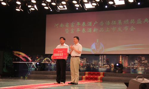 “天天富平春,美梦能成真”“要想感情深,常喝富平春” “富平春,粮心酒”等句句极具特色的广告语吸引着前来参会的人员。810日上午,河南省富平春酒业公司广告语征集颁奖盛典在漯河市新闻大厦三楼会议室举行。漯河市、舞阳县的有关领导,省酒协和酒文化研究院的专家学者,富平春经销商以及来自全国19个省、市、自治区的近350名广告语征集获奖者参加。