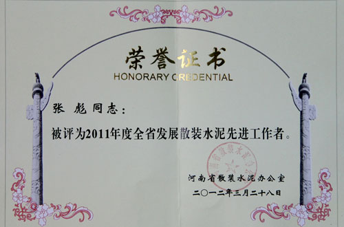 首页 >> 万象城(中国) >>资质荣誉 >> 2011年度全省发展散装水泥先进工作者